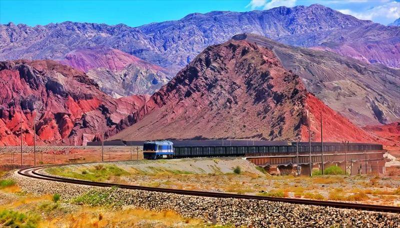 一列货运列车行驶在群山中。中国铁路乌鲁木齐局集团有限公司供图