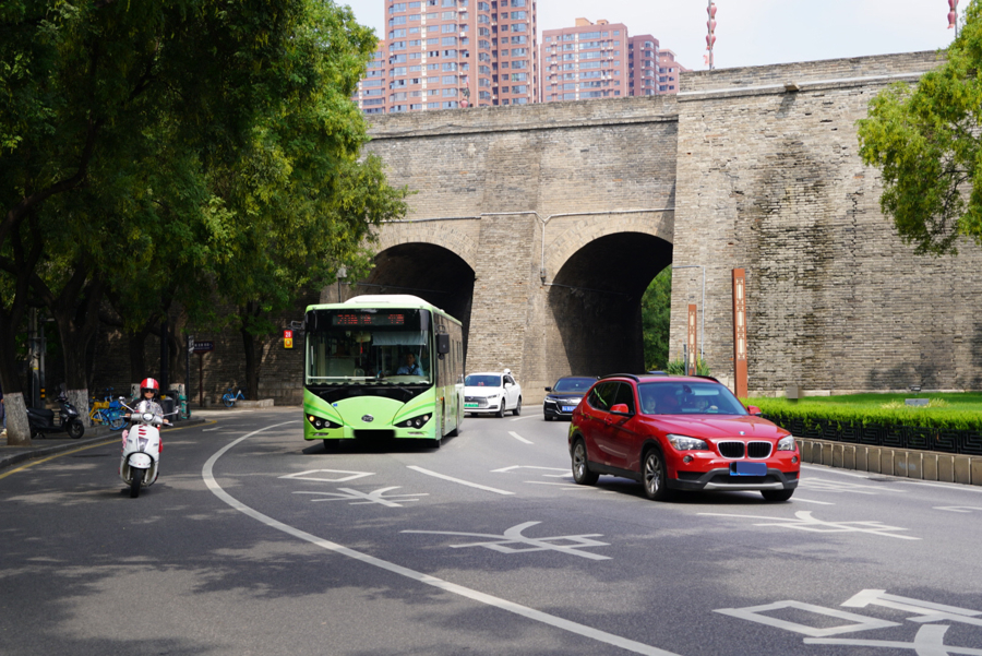 如今的公交车早已都换成了纯电动车辆。 冯蕊 摄