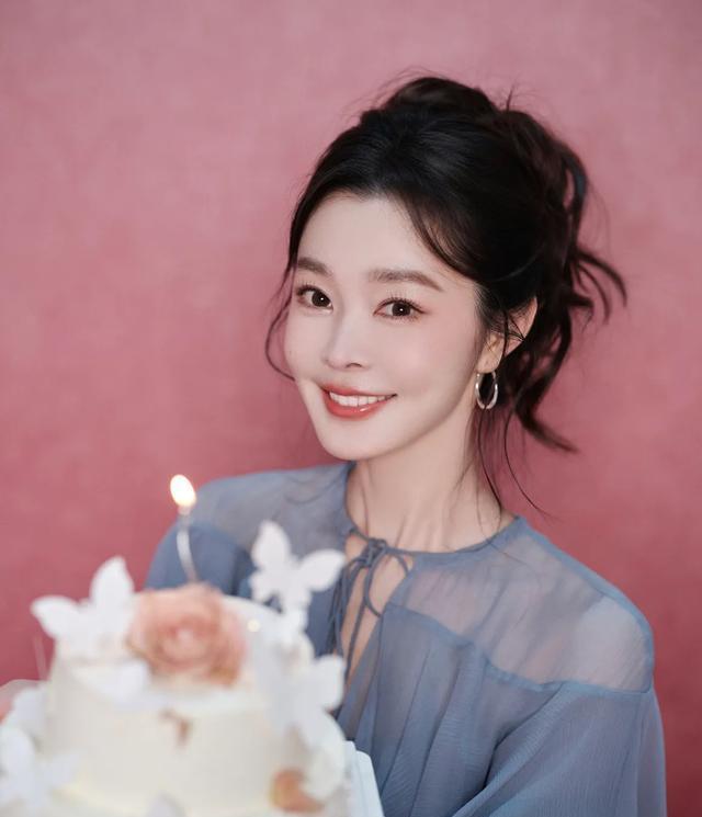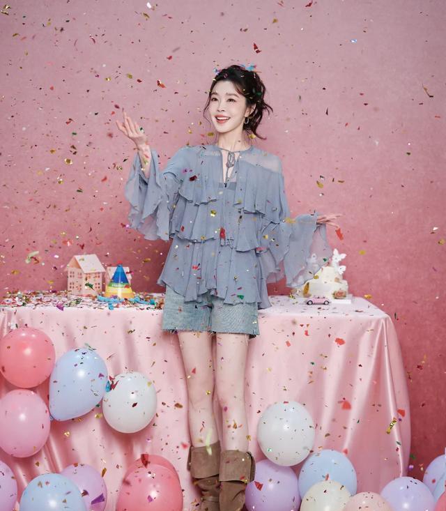 最引人注目的莫过于她手捧蛋糕时展露的招牌甜笑,与微卷长发勾勒出明媚气质