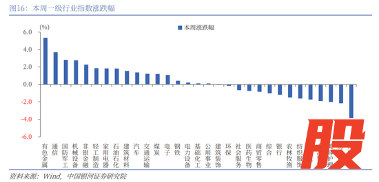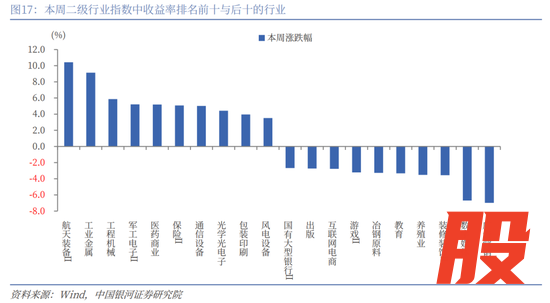 二级行业表现来看,本周收益率前五的行业依次是航天装备Ⅱ、工业金属、工程机械、军工电子Ⅱ、医药商业;收益率靠后的行业依次是广告营销、数字媒体、装修装饰Ⅱ、养殖业、教育。