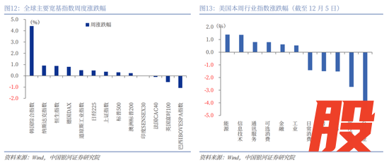 A股市场周观点:(1)本周,A股市场呈现震荡修复行情,主要宽基指数多数录得上涨,全A指数上涨0.72%。创业板指涨幅领先,达1.86%。从风格来看,本周大盘风格相对占优;周期风格涨超2%,而消费风格震荡回调。(2)本周A股行情中不乏商业航天、工业金属等板块亮点,但成交依旧延续缩量。短期来看,年末重要政策窗口临近,关注近期即将召开的12月中央政治局会议和中央经济工作会议,政策部署为2026年经济工作指明方向,同时对于结构性行情具有重要指示意义。结合“十五五”规划建议稿,会议有望重点突出科技水平自立自强,强调扩大内需的战略地位,围绕科技创新、提振消费、投资于人、反内卷、稳楼市等作出战略指引。海外来看,美联储议息会议即将于下周召开,市场博弈加剧,关注议息会议决议以及会后鲍威尔表态对于全球资本流动的影响。年末行情轮动较快,或仍以震荡结构为主。同时,A股市场中长期向好逻辑不改。监管层下调险企股票投资风险因子,将进一步释放保险资金入市潜力,为市场注入更多增量流动性。吴清主席明确提出多项重点举措,旨在提高资本市场制度的包容性适应性,为市场长期健康发展筑牢制度根基。