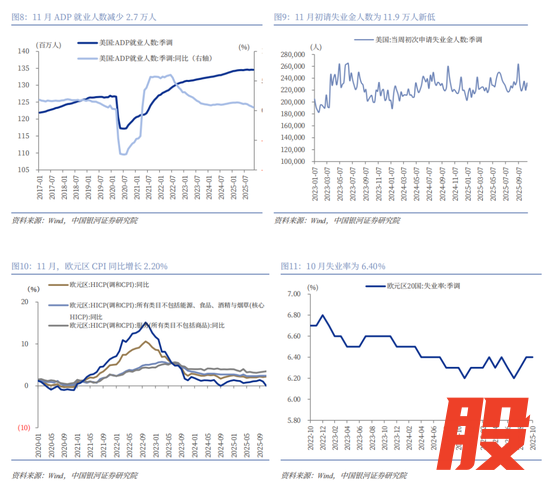 本周,外汇市场的走势主要受美联储的降息预期主导,美元贬值,非美货币升值,美元指数下跌0.46%,欧元兑美元上涨0.37%,英镑兑美元上涨0.98%,美元兑日元下跌0.53%。市场定价12月降息概率高达85%以上。此外,白宫经济顾问哈塞特可能成为下一任美联储主席也强化了市场对未来更宽松政策的预期,进一步施压美元。本周美国劳动力数据面临矛盾和博弈,11月初请失业金人数为11.9万人新低,前值为21.6万人,好于预期,对比地,11月ADP就业人数减少2.7万人,前值为增加4.2万人却进一步加剧了市场对劳动力市场的担忧,市场选择性忽略利好。其次,美国制造业PMI为48.2%,前值为48.7%,低于市场预期,连续第九个月处于50的荣枯线以下,服务业PMI为52.6%,前值为52.4%,服务业扩张幅度加快。11月,欧元区CPI略有上涨,CPI同比增长2.20%,前值为2.1%,高于市场预期,核心CPI为2.40%,前值为2.40%,与预期一致。